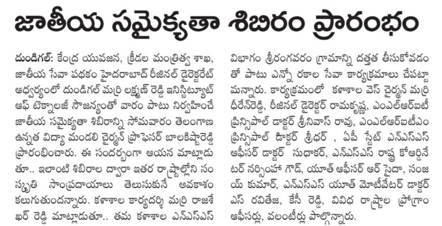 National Integration Camp at MLRIT